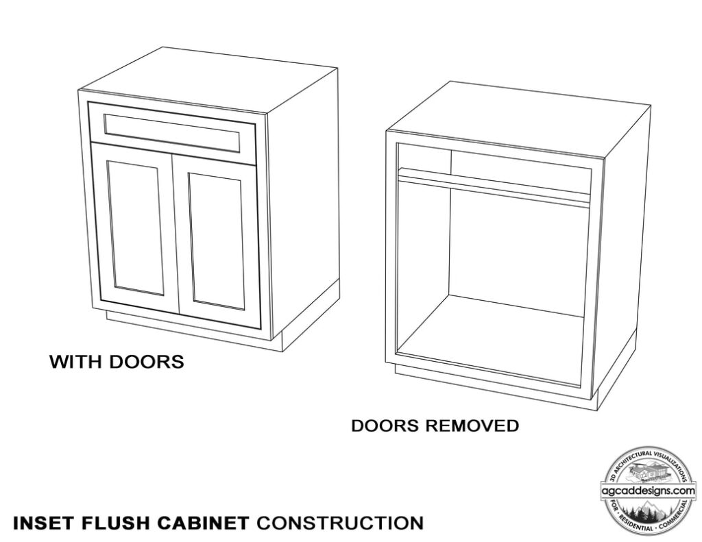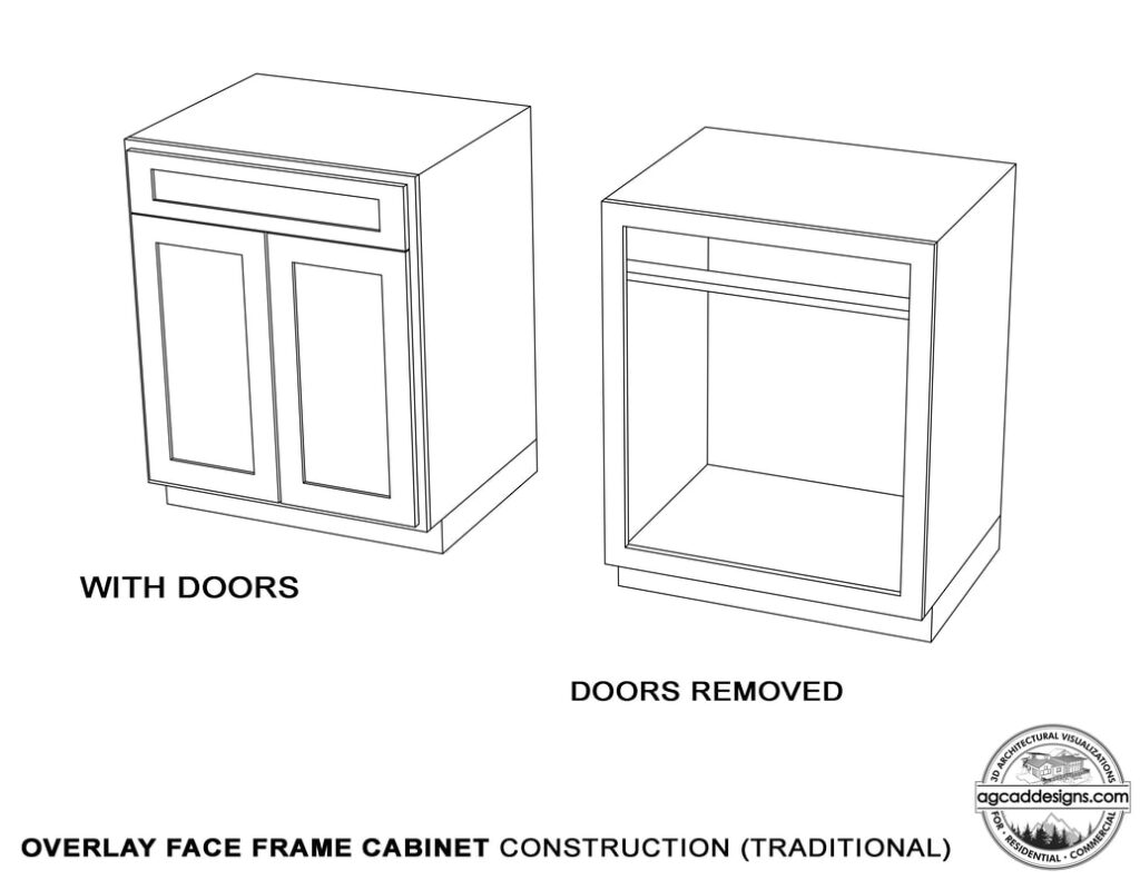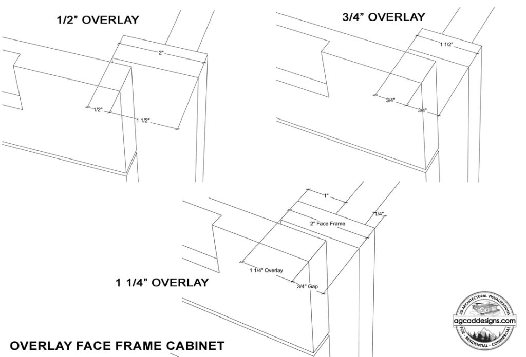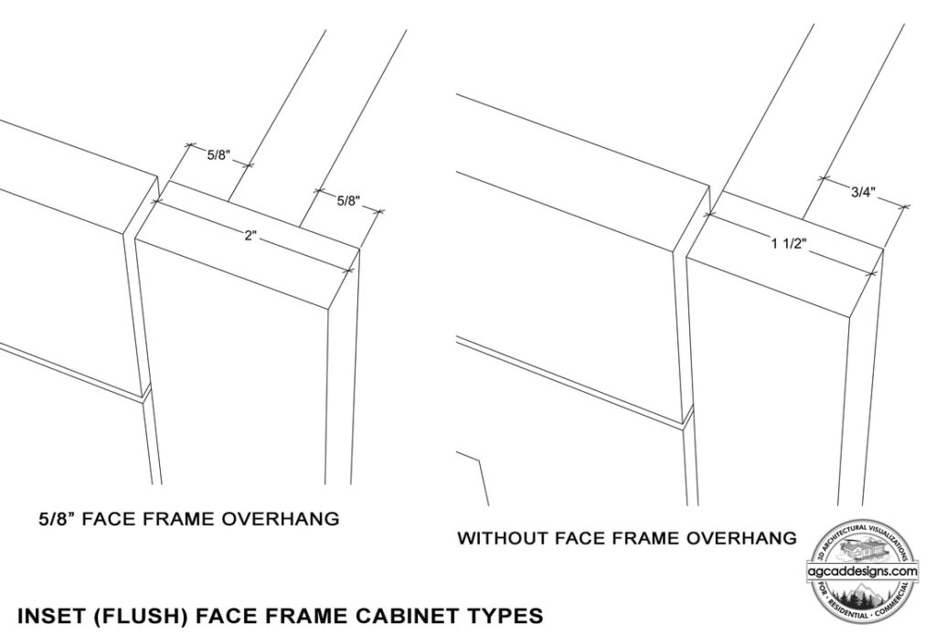 Typical Cabinet Construction samples: Frameless, Overlay Face Frame & Inset