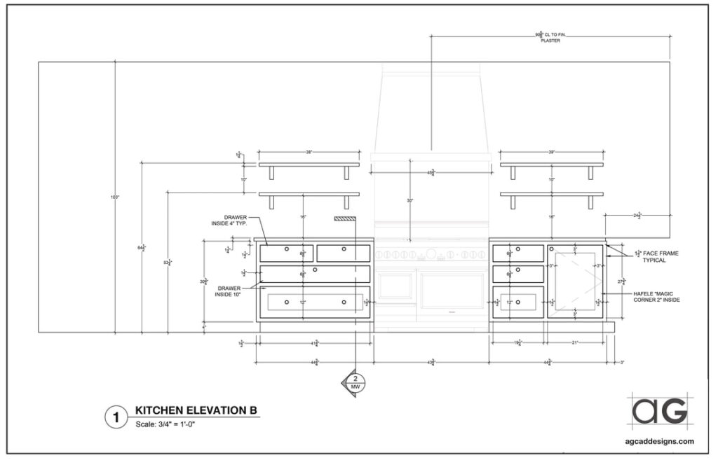 AG CAD Designs provides online CAD drafting services for custom luxury millwork, creating architectural shop drawings based on design renderings, sketches, and client input. Each drawing is clear, precise, and fabrication-ready, including detailed notes on materials, finishes, and construction specifics.